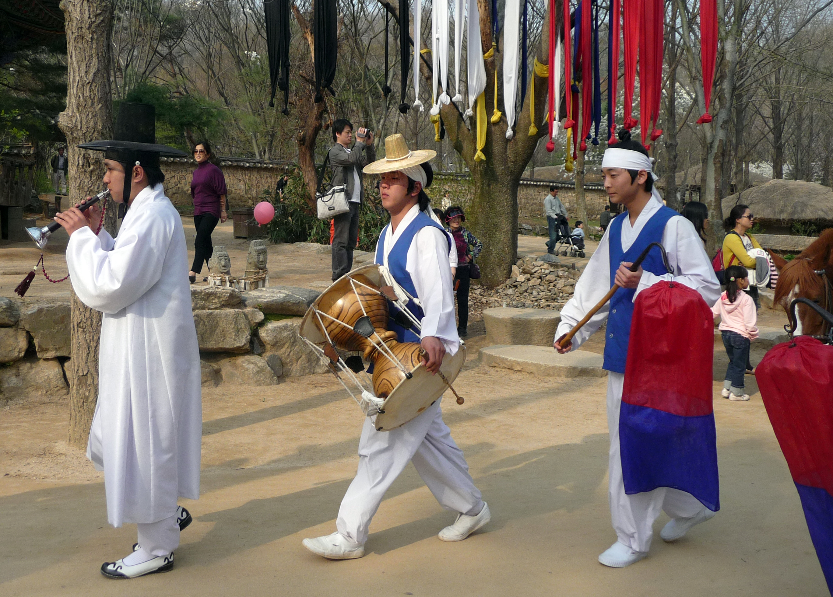 I was thrilled with the parade of people playing traditional Korean instruments because I bought my grandmother a Korean drum, and she wanted a picture of someone playing it. So now I have one to show her.