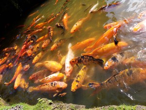 When no one is around and feeding them, I think the koi are fabulous to just sit and watch. They’re very peaceful fish.