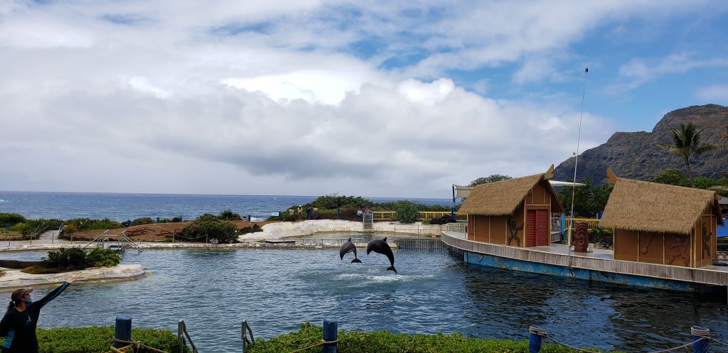SeaLife also takes on dolphins who have retired from service with the United States Navy. What they did for the Navy is sometimes classified, but dolphins are used for all kinds of things like testing the affects of sonar on sea life and finding mines underwater. These dolphins now perform in the Aloha Dolphins show twice a day, and are available to swim with if you make a reservation and pay extra. My husband did the Royal Dolphin Swim Package and absolutely loved it.