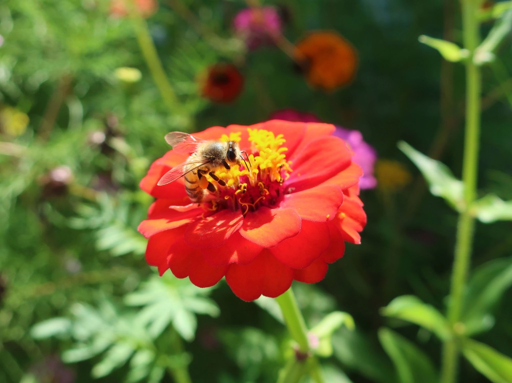 We planted a lot of flowers to help feed the bees. It was fun watching them collect their pollen and head off to make honey.